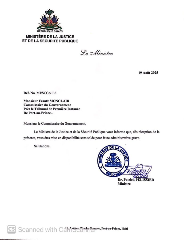 À Port-au-Prince, la politique ressemble de plus en plus à une comédie musicale sans partition. À peine vingt-quatre heures après avoir libéré l’ancien sénateur Nenel Cassy, le Commissaire du gouvernement Frantz Monclair a vu son fauteuil disparaître sous lui comme par magie. Le pouvoir intérimaire, sans perdre de temps, a sorti la carte de la révocation express.