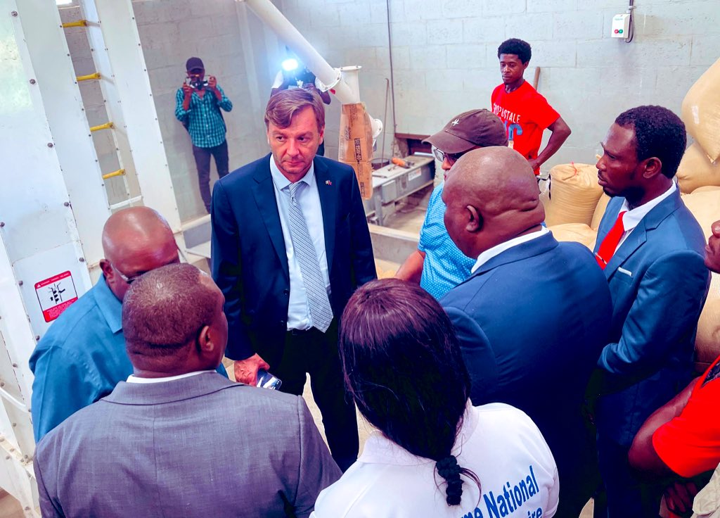 Une délégation menée par l’ambassadeur de France en Haïti, Antoine Michon, et le coordonnateur général du Programme national de cantines scolaires (PNCS), Me Kevenot Dorvil, a visité ce mercredi l’usine de riz de l’organisation CLÉS, située à Carrefour Chevry dans la commune de Fort-Liberté. Cette structure fournit une partie des produits destinés aux repas scolaires.